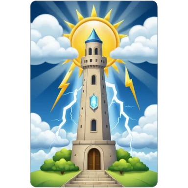 The tower tarot card lighting clouds and sun emoji