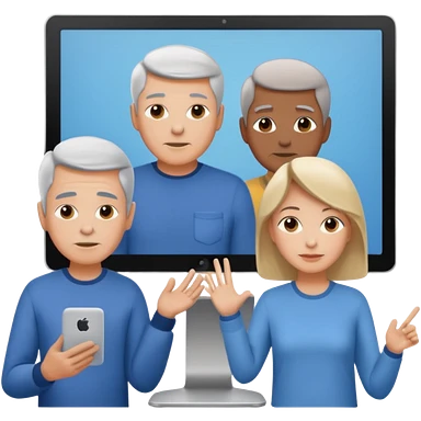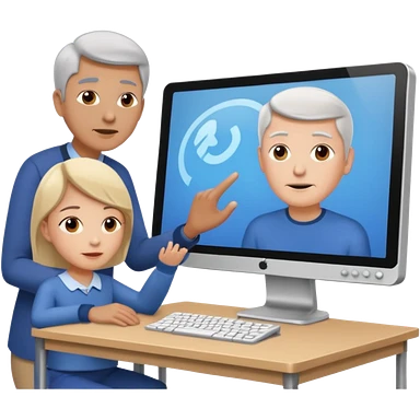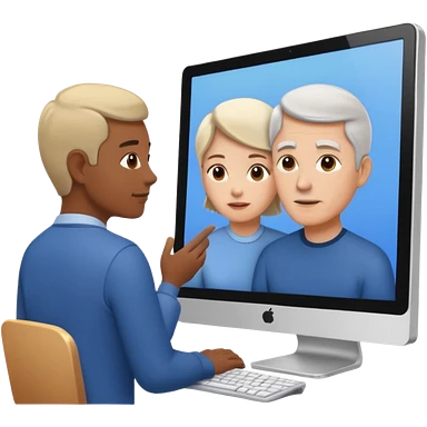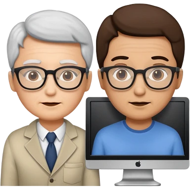 teaching somebody else in person, in the same place, watching the same monitor together, the trainee and trainer are in the similar age, two both are men, the monitor should be showing some data graphs emoji | AI Emoji Generator