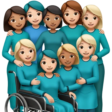 Teal group hug of 8 women with one in wheelchair emoji | AI Emoji Generator