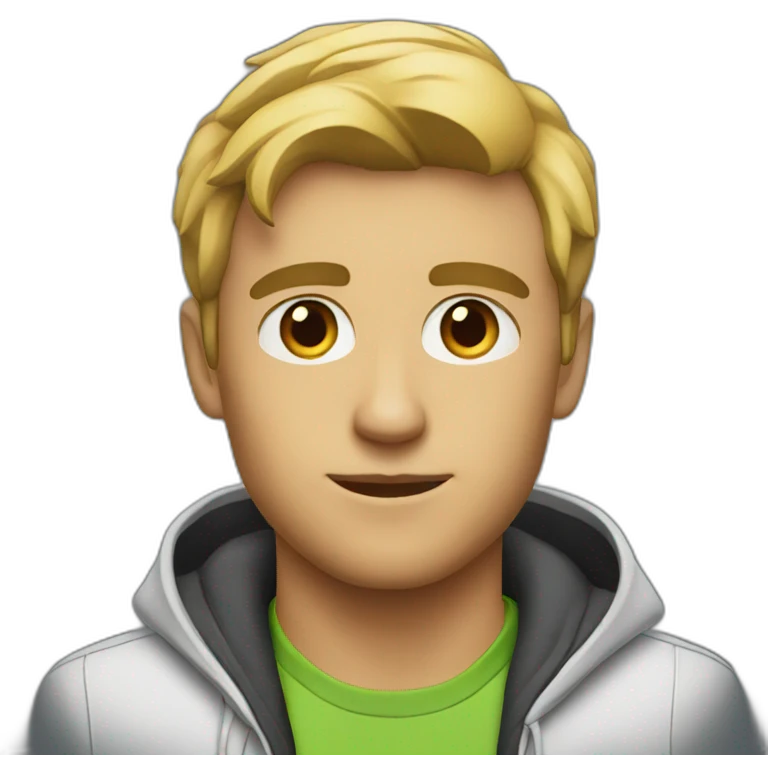 tech bro with beard 5 o clock shadow with more blonde hair, and bright green eyes. No mustache. Just a full beard. And black shirt with no color on it. emoji