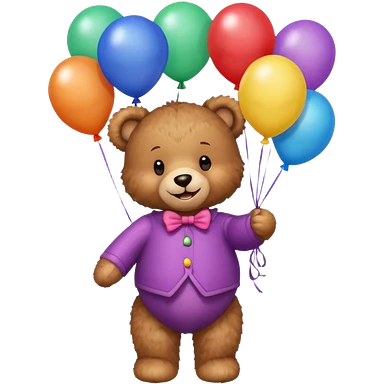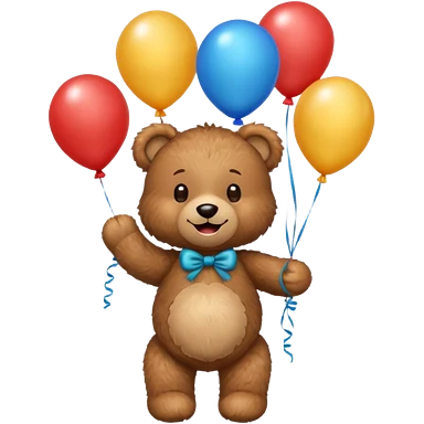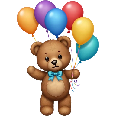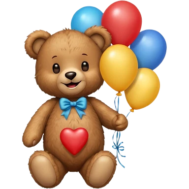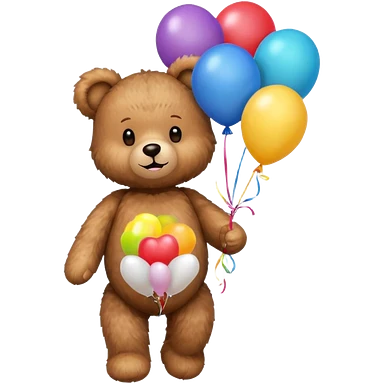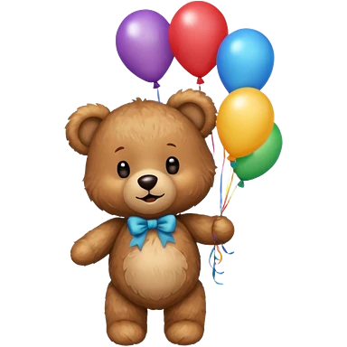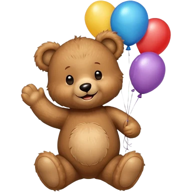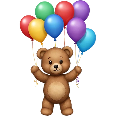 teddy bear holding balloons, birthday, cute, fluffy, semi-realistic emoji