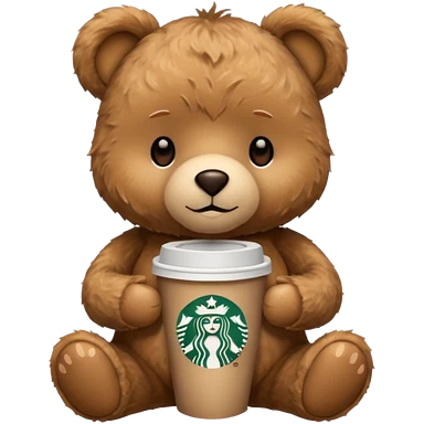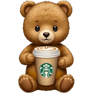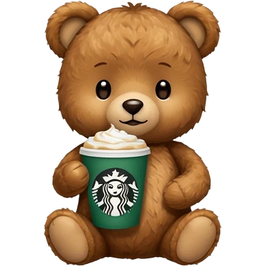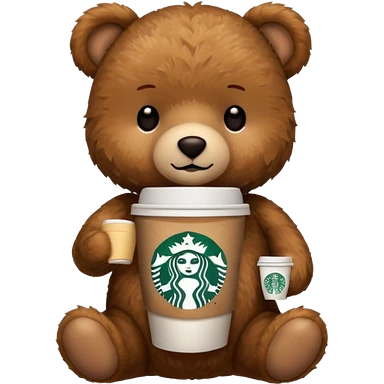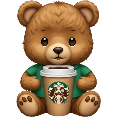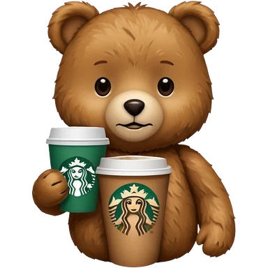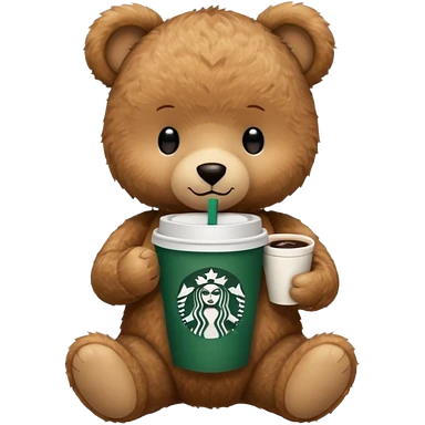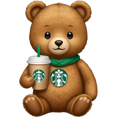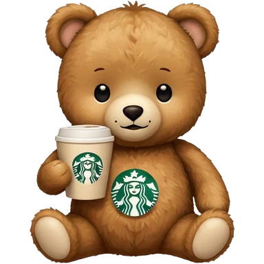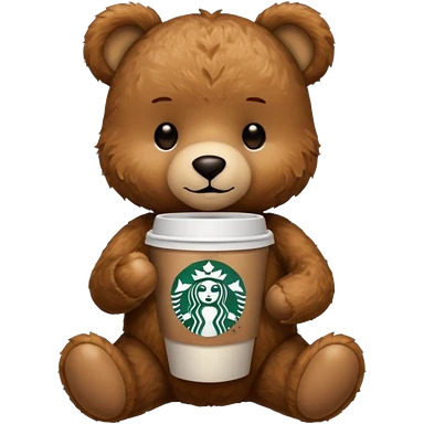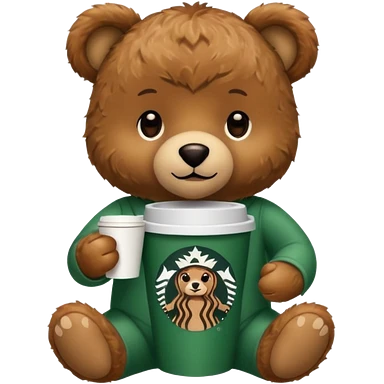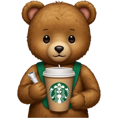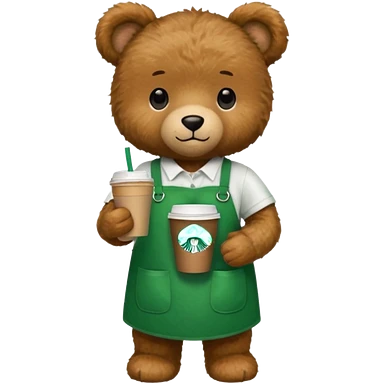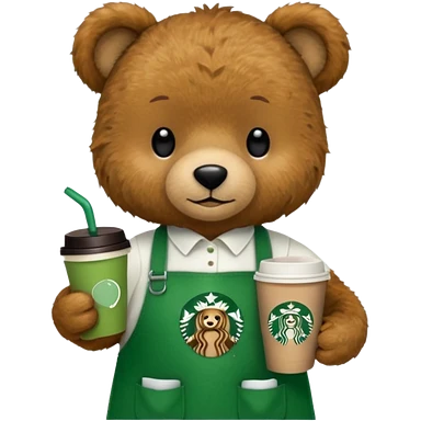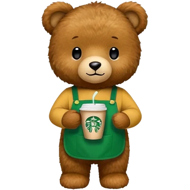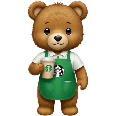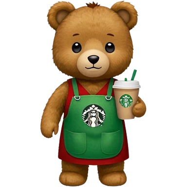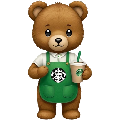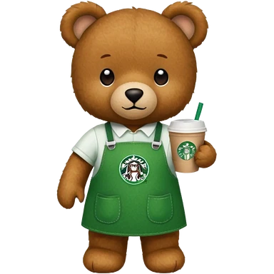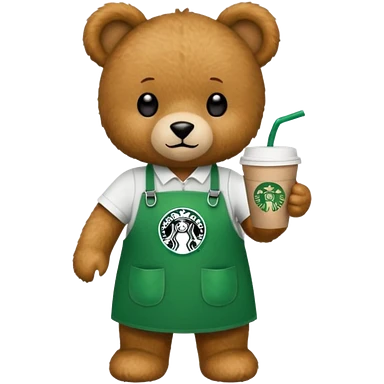 teddy bear wearing green apron with one cup of starbucks coffee emoji