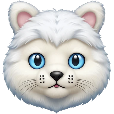 White teddy bear body, cat head with white fur and blue eyes iOS style emoji