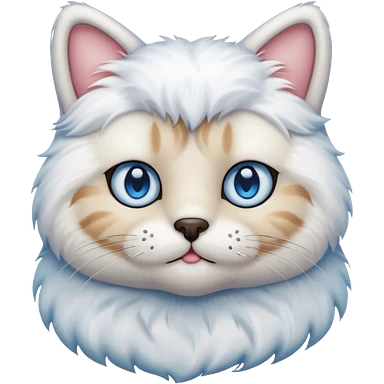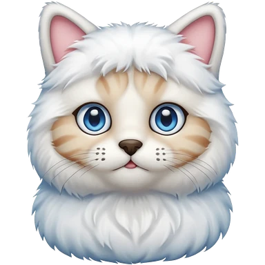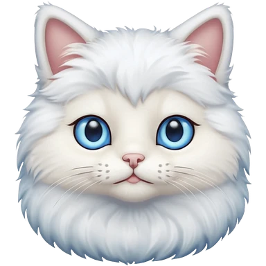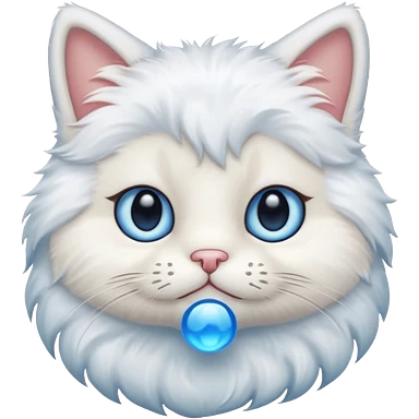 Teddy cat white with blue eyes iOS style emoji | AI Emoji Generator