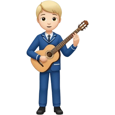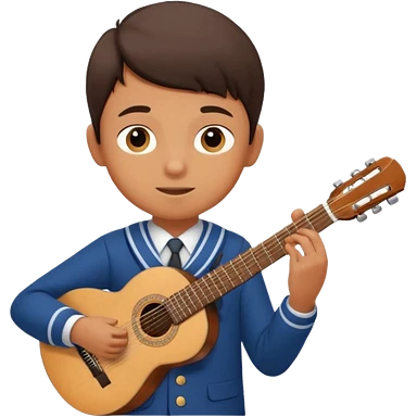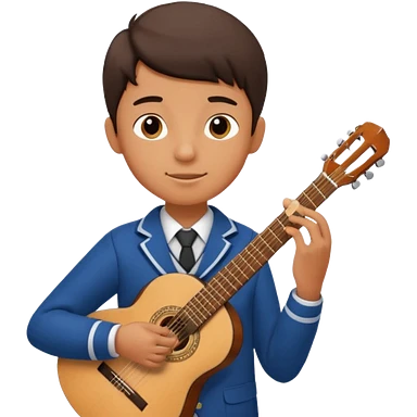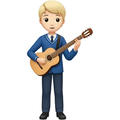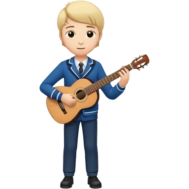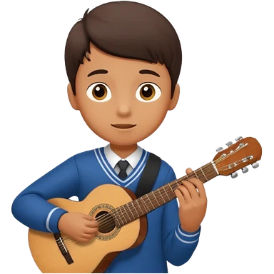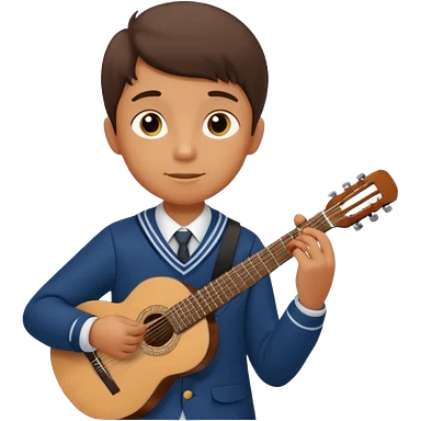 Teen boy – wearing school uniform, holding classical guitar, practicing chords. full body emoji | AI Emoji Generator