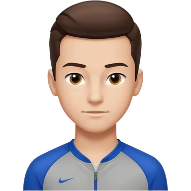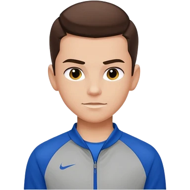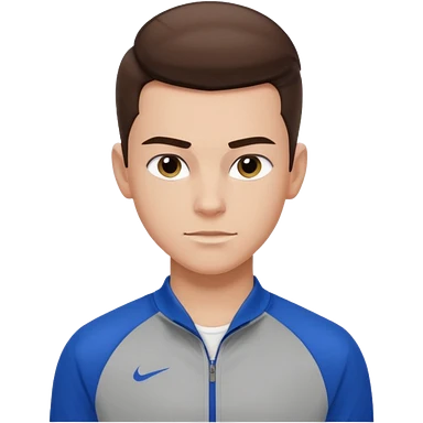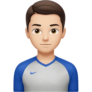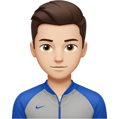 teen boy slick back brunette hair wearing sport clothes giving famous school boy vibe with confident attitude and smirk emoji