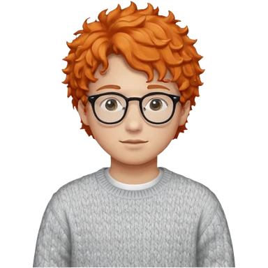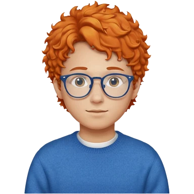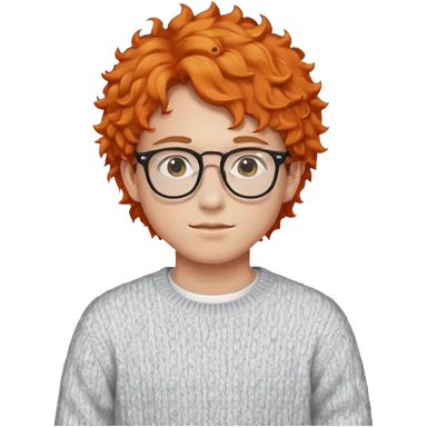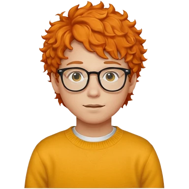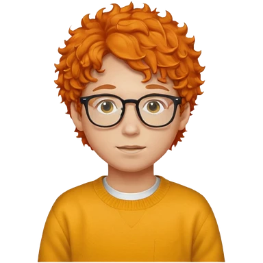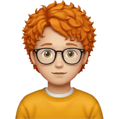 teen nerd orange hair boy curly orange hair wearing white shirt inside a sweater with glasses emoji