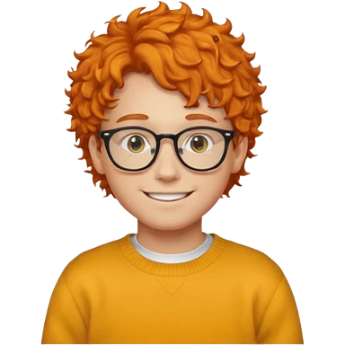 teen nerd orange hair boy curly orange hair wearing white shirt inside a yellow sweater with glasses emoji