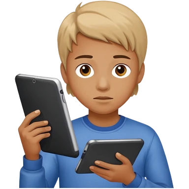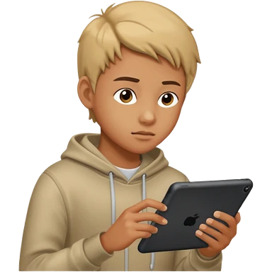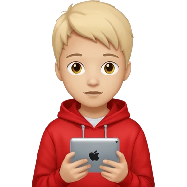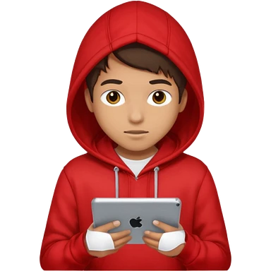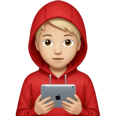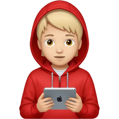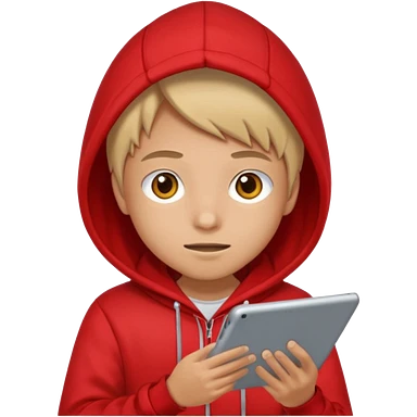 Teen gaming on tablet, red hoodie emoji | AI Emoji Generator