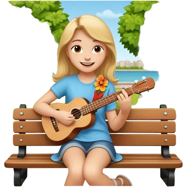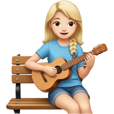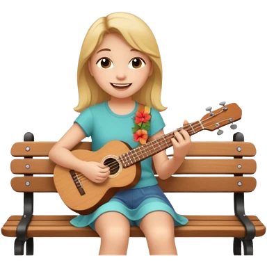 Teen girl – relaxed on park bench, strumming a ukulele, smiling. emoji | AI Emoji Generator
