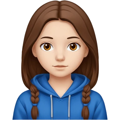 teen girl, white skin, long brown hair middle parted, brown eyes, blue hoodie emoji | AI Emoji Generator