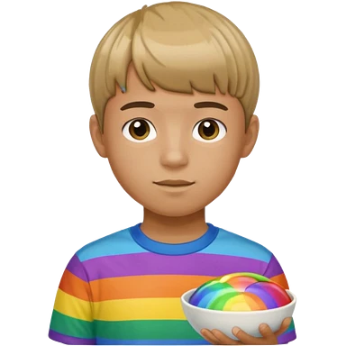 Teenage boy wearing a rainbow shirt and has a bowl cut emoji