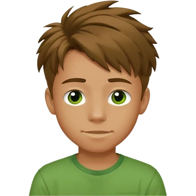 A teenage Polish boy with medium dark brown hair, tan skin, green eyes emoji