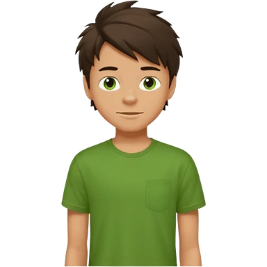 A teenage Polish boy with medium shoulder length dark brown hair, tan skin, green eyes emoji