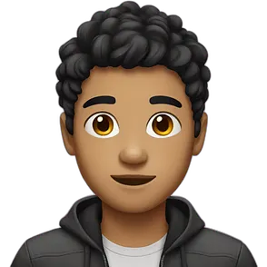 Cheerful Pakistani teenager with black curly hair. He's wearing a blue hoodie. emoji