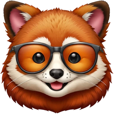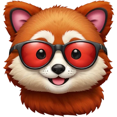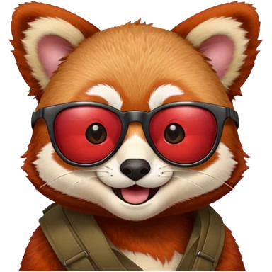 Make a logo of a red panda but instead of ginger fur, its fur is crimson red, and only the face, give the red panda shades and make it smile emoji