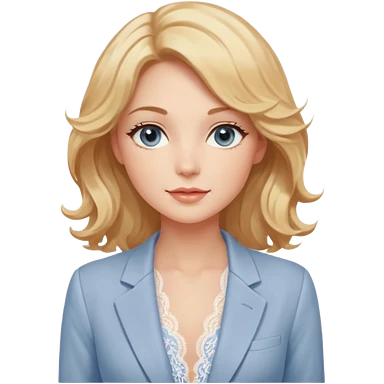 Telegram-style sticker pack of a gentle woman with fair skin, wavy honey-blonde hair, and calm gray-blue eyes. She wears blush lace lingerie and a white blazer, radiating warmth and confidence. Stickers are lively, bright, and expressive, with a soft romantic tone.emoji