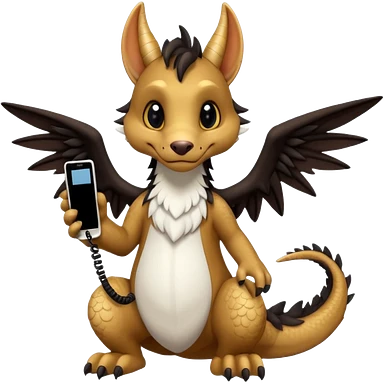 "Telephone" the brown and black anthropomorphic anthro "Dutch Angel Dragon" furry original species fursona fursuit emoji | AI Emoji Generator