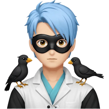 Handsome sexy adult anime man with light-blue hair and a black bird mask, wearing a white lab coat (Il Dottore from Genshin Impact) emoji