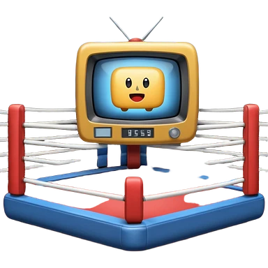television set with a 2x2 grid of channels turned on, each grid square with a different image emoji