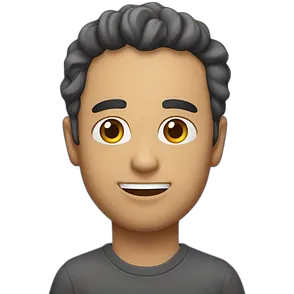 Creame un emoji de un hombre con el pelo negro y gafas, que tenga una camisa cuello redondo con unas letras que digan HUGO BOSS emoji