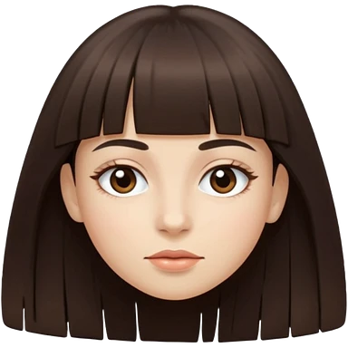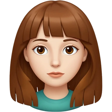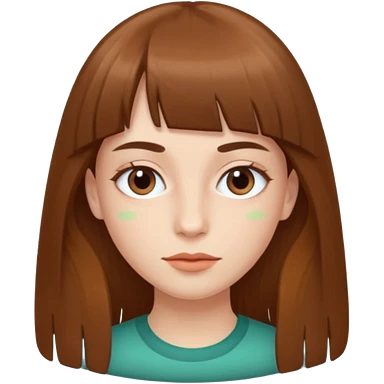 Tenho uma franja vegana, sombrancelha fina, um rosto oval e meu cabelo é grande e castanho emoji | AI Emoji Generator