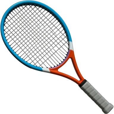 light brown skinned tennis coach, short straight black hair with widow's peak, oval face, small eyes, smiling, holding blue Yonex tennis racket, wearing dark navy blue dry fit shirt emoji