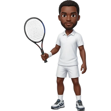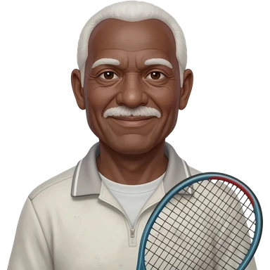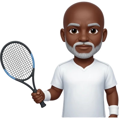 Tennis player adult black bald male white short beard and mustache one demonstrating handed backhand emoji | AI Emoji Generator