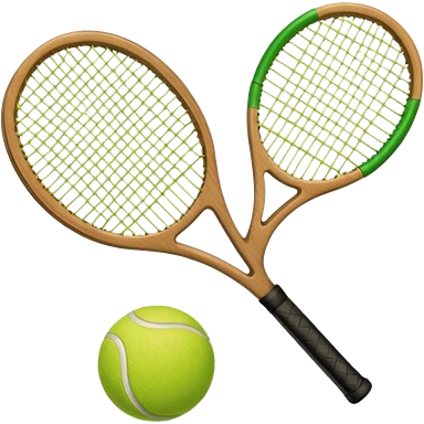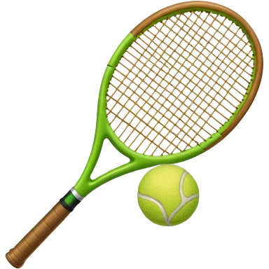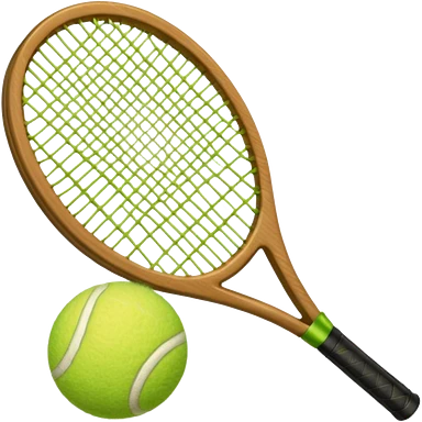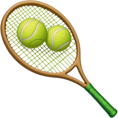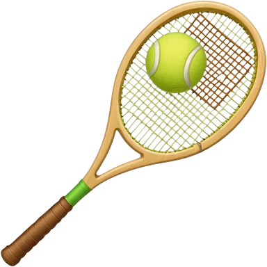 A tennis racket with a bright yellow tennis ball resting on it, set against the backdrop of a well-maintained tennis court. The scene emphasizes the smooth lines of the court and the focus on the ball and racket, symbolizing the elegance and precision of the sport emoji