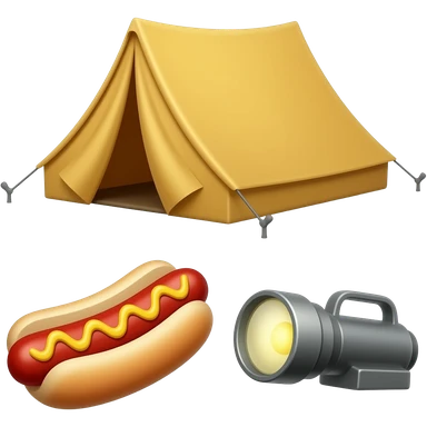 Tent, hot dog, tofu dog, and flashlight emoji