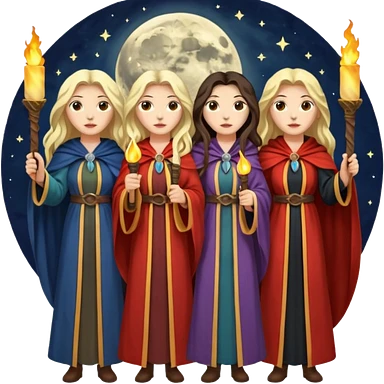 Three women with two torches and a moon emoji