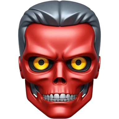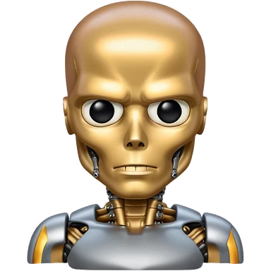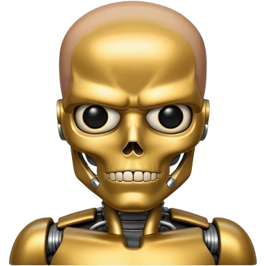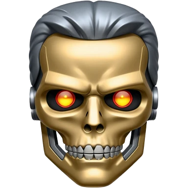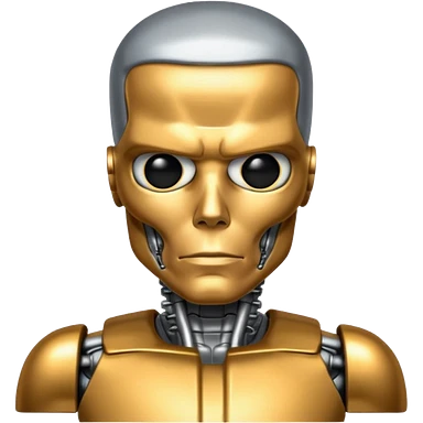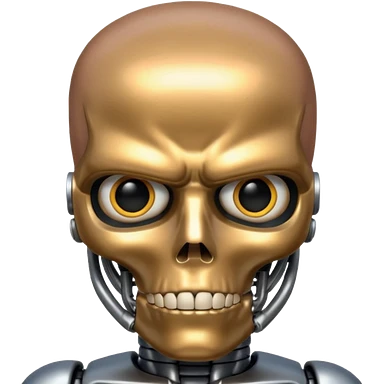 Terminator Arnold Schwarzenegger aiming a gun upward, metallic endoskeleton details, realistic emoji style emoji