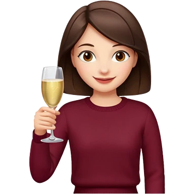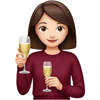 Brunette with her back turned in burgundy sweater with glass of champagne in her hand emoji