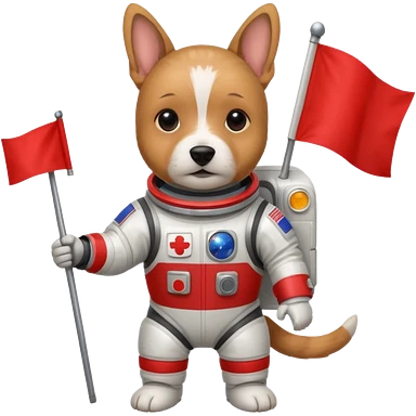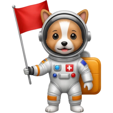 terrier in space suit holding red rectangle flag emoji | AI Emoji Generator