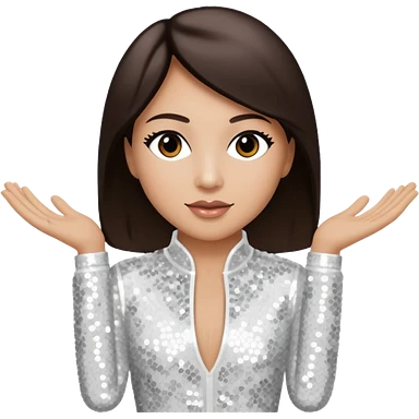 Terry Coldwell from East 17 with light skin, dark brown hair, white sequin outfit emoji