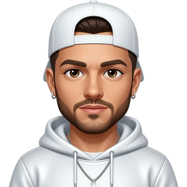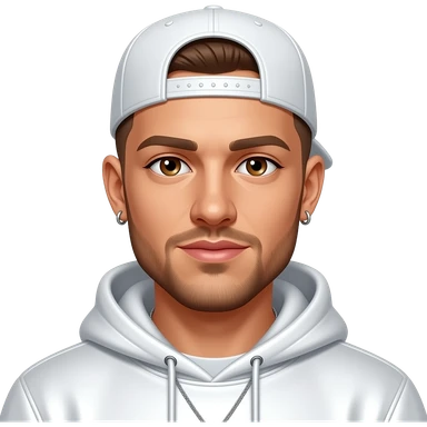 Terry Caldwell from East 17 with brown eyes, dark brown buzz cut hair and short beard, white cap, white metallic sweatshirt, necklace and earrings emoji