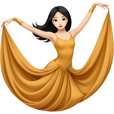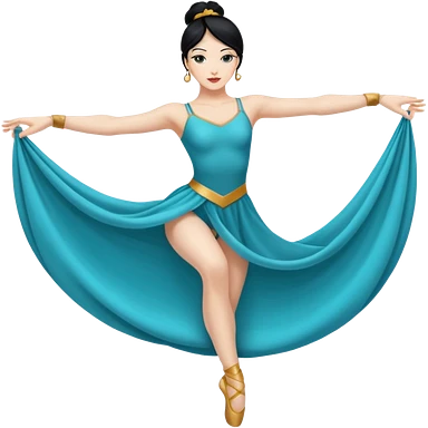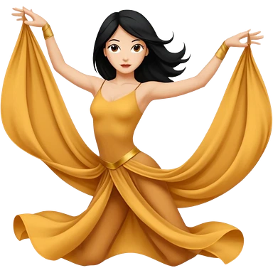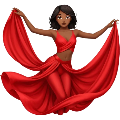 Emoji de una mujer pelinegra blanca bailarina de danza aerea haciendo figuras en la tela en el aire emoji