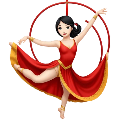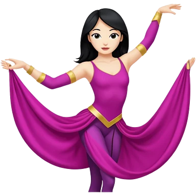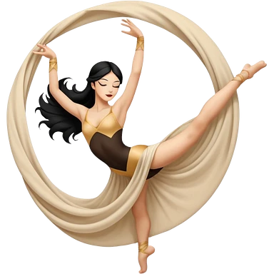 Emoji de una mujer pelinegra blanca bailarina de danza aerea haciendo figuras en el aire en una tela emoji