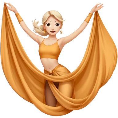 Emoji estilo ilustración de una mujer practicando danza aérea en tela, sus manos en la tela de seda, expresión feliz, estilo emoji moderno, colores suaves, fondo simple emoji