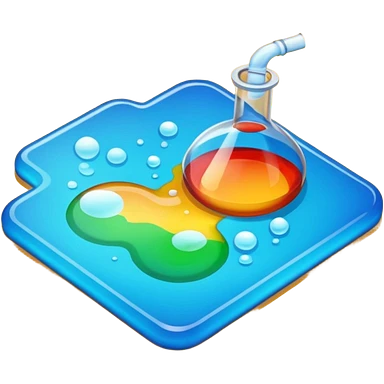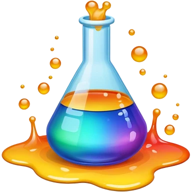 An icon featuring chemical flasks, liquids, powders, and chemical formulas, symbolizing the science of chemistry. The design includes bubbling reactions, molecular structures, and test tubes, representing experimentation and chemical analysis. Transparent background. emoji