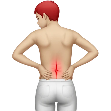 A person standing and holding their lower back in pain, with a red highlight showing the sore area. The person’s face expresses discomfort, and the background is plain white. Realistic lighting, medical concept illustration showing lower back soreness or muscle strain. emoji