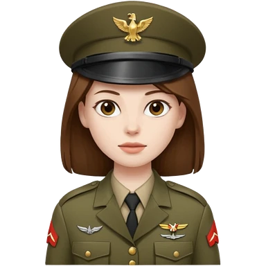 female soldier with pale skin and long, straight, brown hair emoji