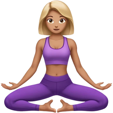 A serene woman wearing purple yoga clothes balancing in tree pose, stars around her, meditative aura. emoji