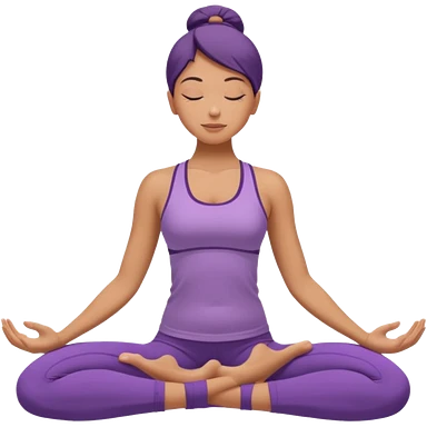 A woman in purple yoga wear resting in child’s pose, soft white background, peaceful energy. emoji