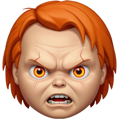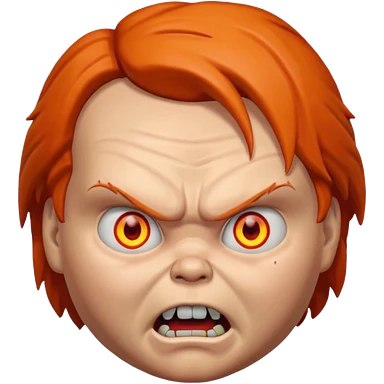 Tête de chucky énerver avec les yeux orange emoji | AI Emoji Generator