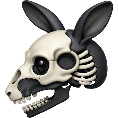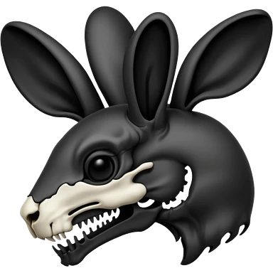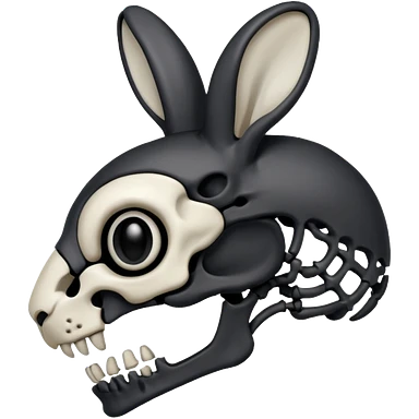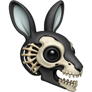 Tête de lapin squelette noire de profil avec des G à la place des yeux emoji | AI Emoji Generator