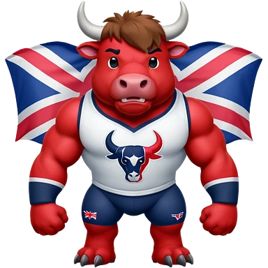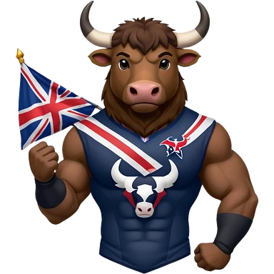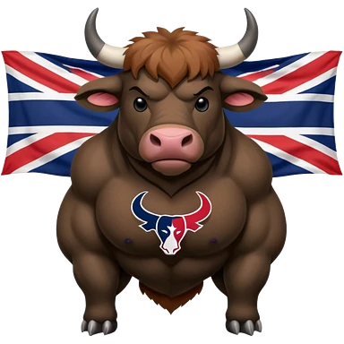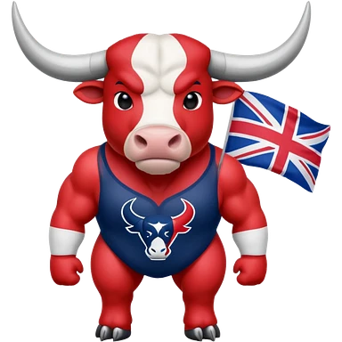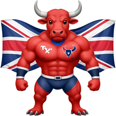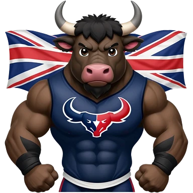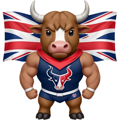 Houston texans bull, wearing a texans jersey, with a union jack flag behing emoji