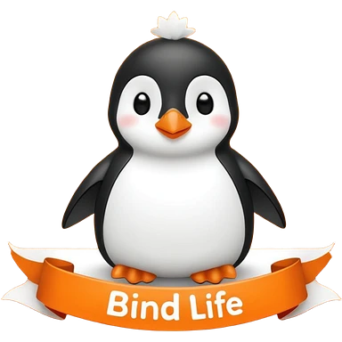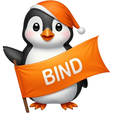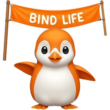 Text, in bright orange, that spell 'Bind is Life!!!' and also include a little white happy penguin emoji | AI Emoji Generator