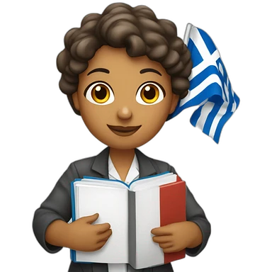Woman scientist holding a Greek flag and a physics textbook emoji