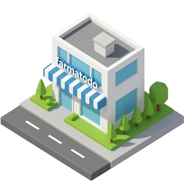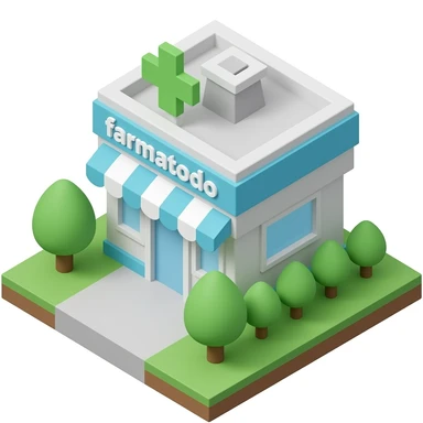 Farmacia 3D isometrico con texto que diga farmatodo emoji